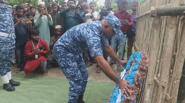 মাইলস্টোন স্কুলের দুর্ঘটনায় কুষ্টিয়ার দৌলতপুরে নিহত অভিভাবক রজনীর কবরে বিমান বাহিনীর শ্রদ্ধাজ্ঞাপন।
